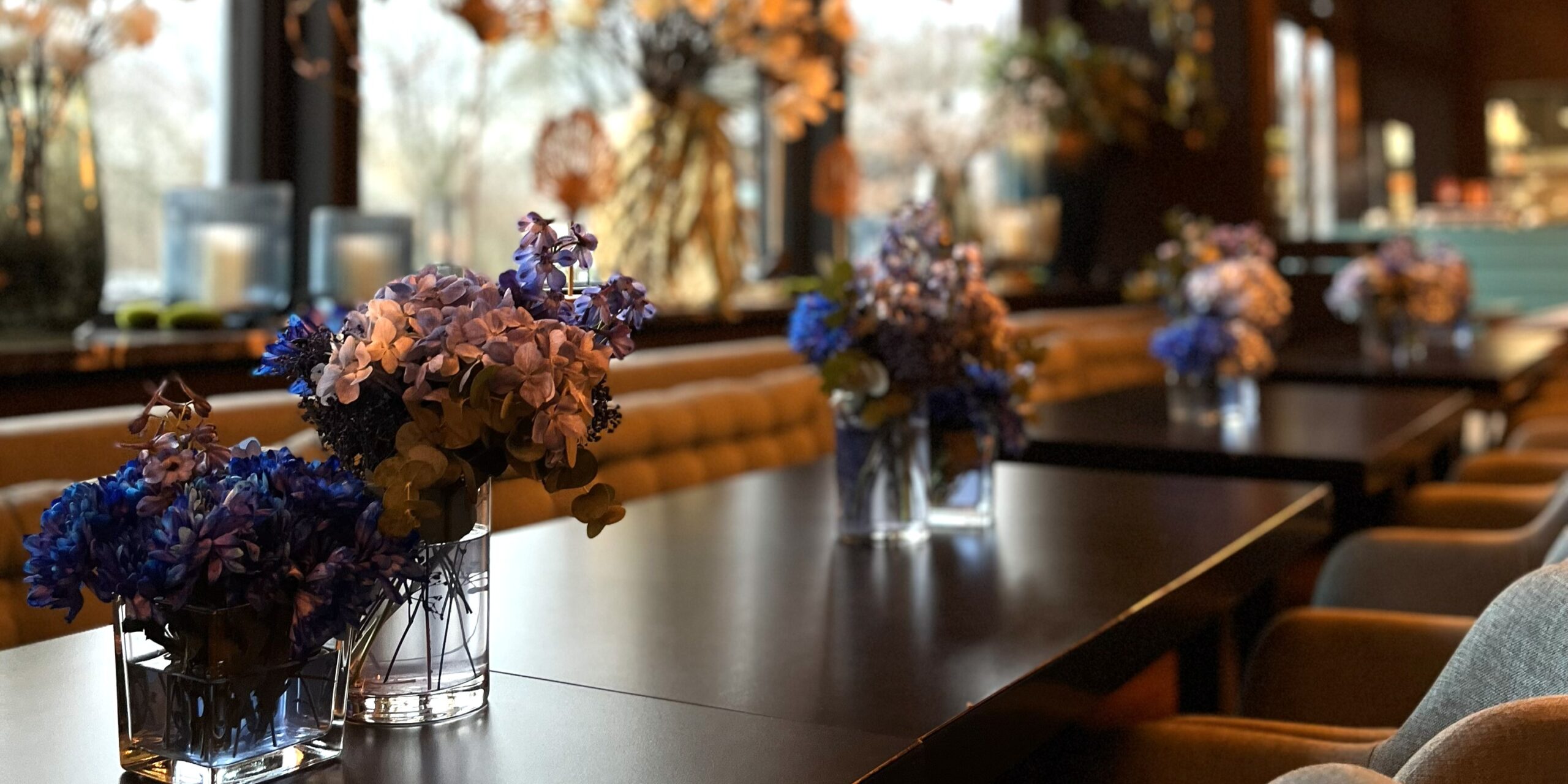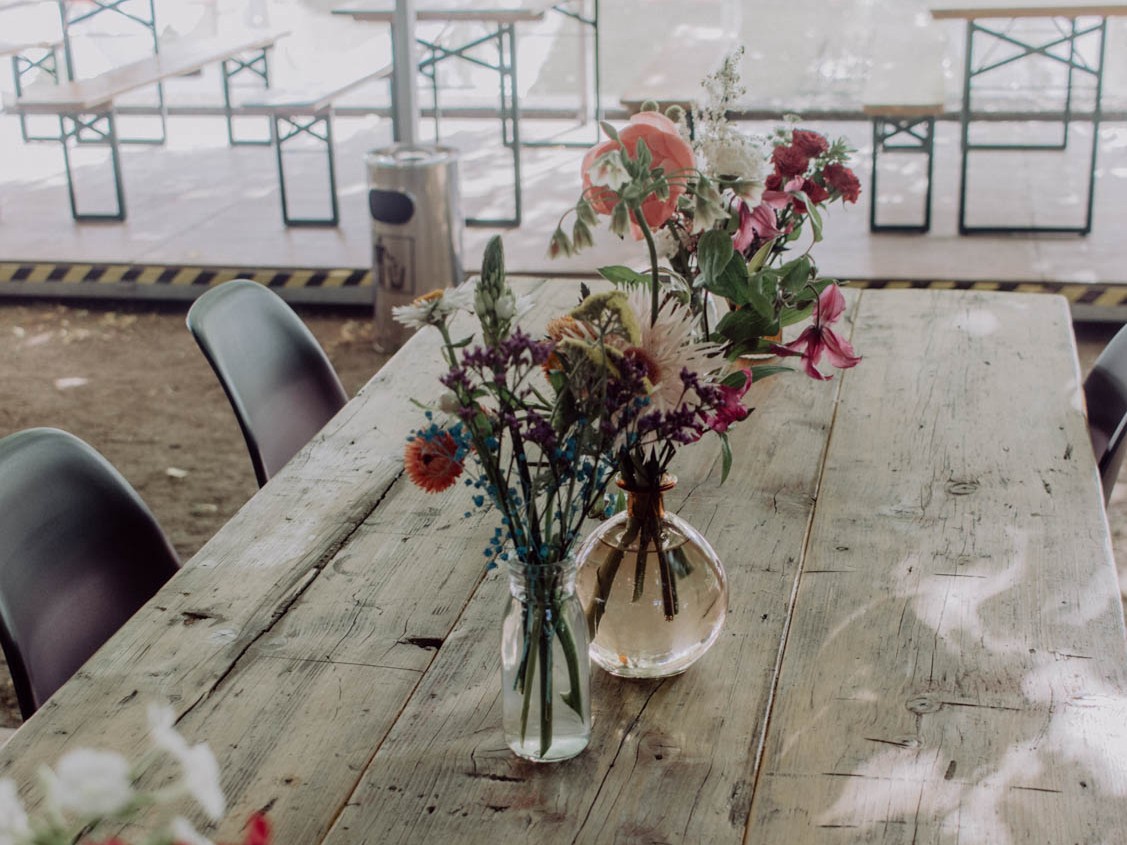Für dieses Business-Event haben wir ein urban-mediterranes Gestaltungskonzept entwickelt. Besonderes Highlight: individuell ausgewählte Mietpflanzen und hochwertige Gefäße. Die Tischdekoration bestand aus Braunglasvasen mit locker arrangierten, wild-urbanen Schnittblumen – stilvoll und bewusst unkonventionell. Die gesamte florale Inszenierung wurde in enger Abstimmung mit der betreuenden Eventagentur umgesetzt.